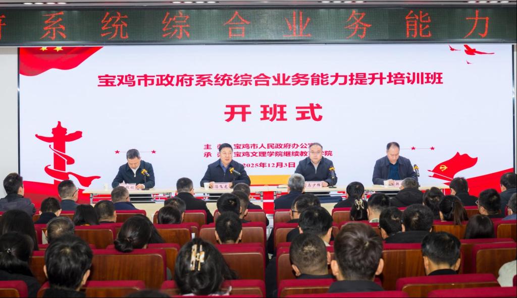 12月3日上午,宝鸡市政府系统综合业务能力提升培训班开班仪式在我校举行。副校长冯飞龙出席开班仪式并致辞,宝鸡市政府正县级督查专员马少辉作开班动员讲话,继续教育学院院长韩星明参加开班仪式。开班仪式由市政府办公室副主任何权刚主持。